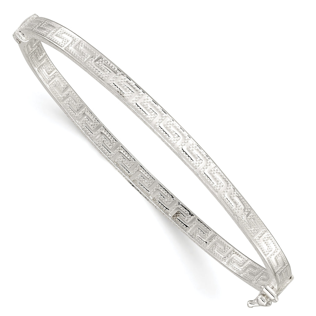 Sterling Silver Polished Greek Key Design Hinged Bangle