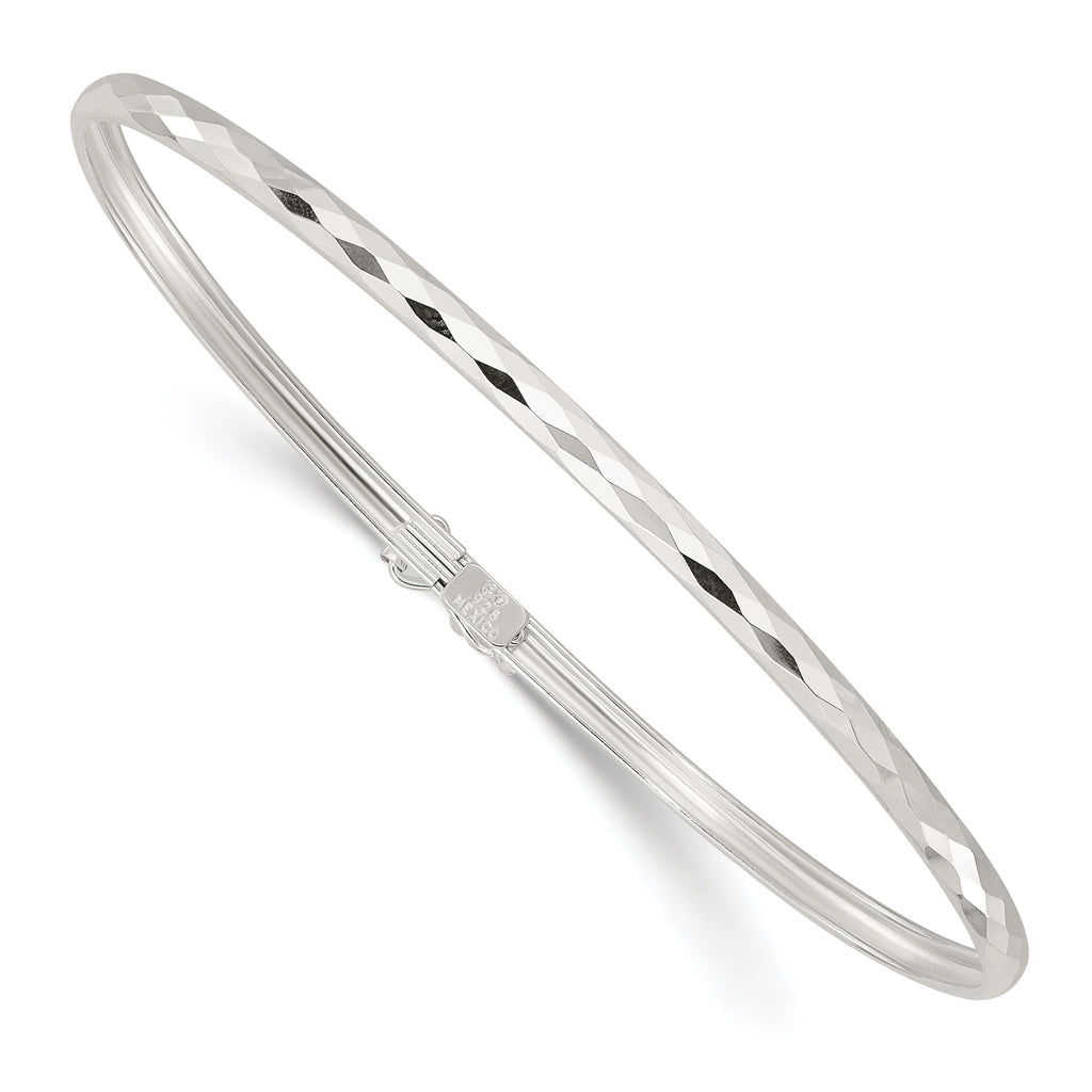 Sterling Silver Polished Textured Flexible Bangle Bracelet