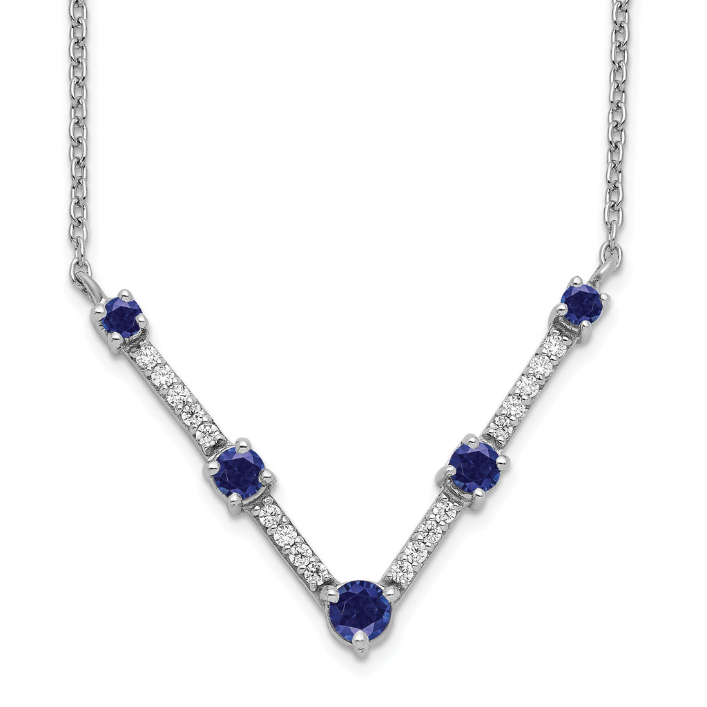 14K White Gold Lab Grown Diamond & Created Blue Sapphire Necklace