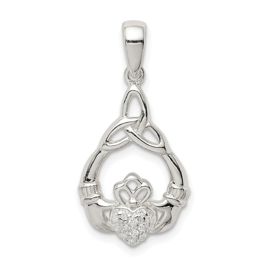 Sterling Silver Polished CZ Claddagh w/Trinity Knot Pendant