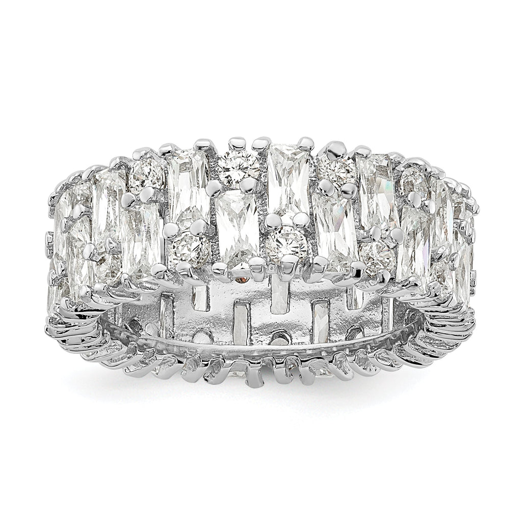 Cheryl M Sterling Silver Rhodium-plated Fancy Baguette-cut and Brilliant-cut CZ Ring