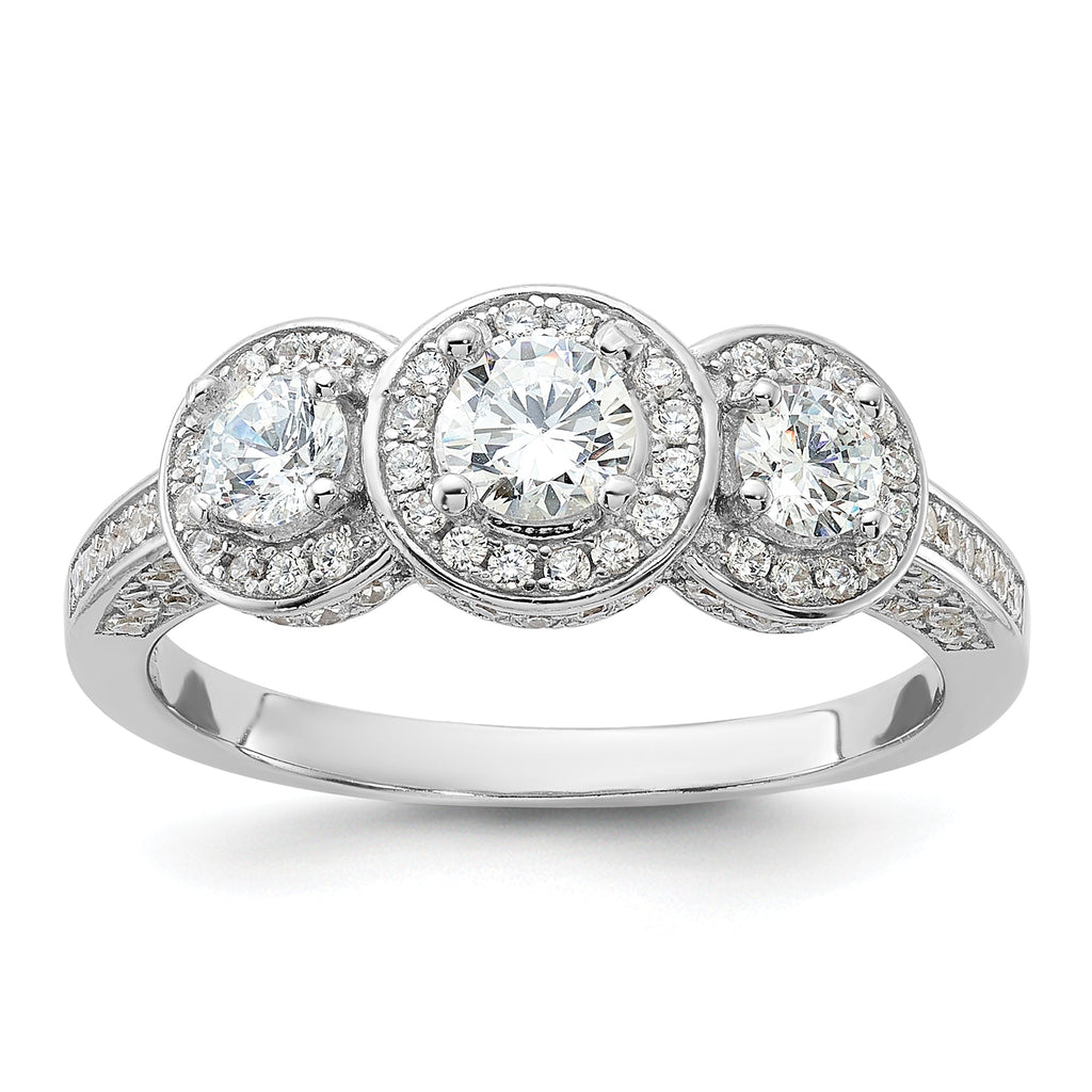 Cheryl M Sterling Silver Rhodium-plated Brilliant-cut CZ Three Stone Halo With Side Stones Ring