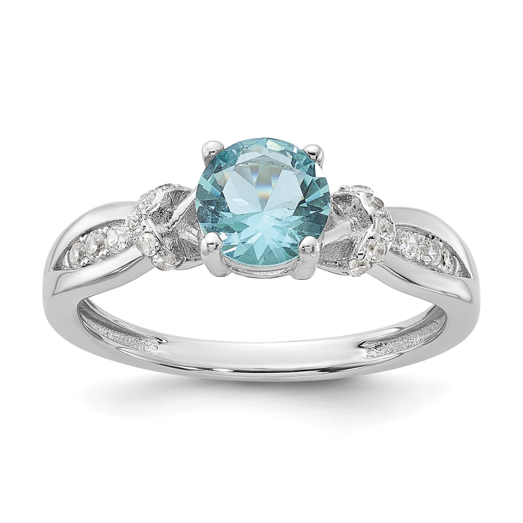 Cheryl M Sterling Silver Rhodium-plated Brilliant-cut Blue Glass and White CZ Ring