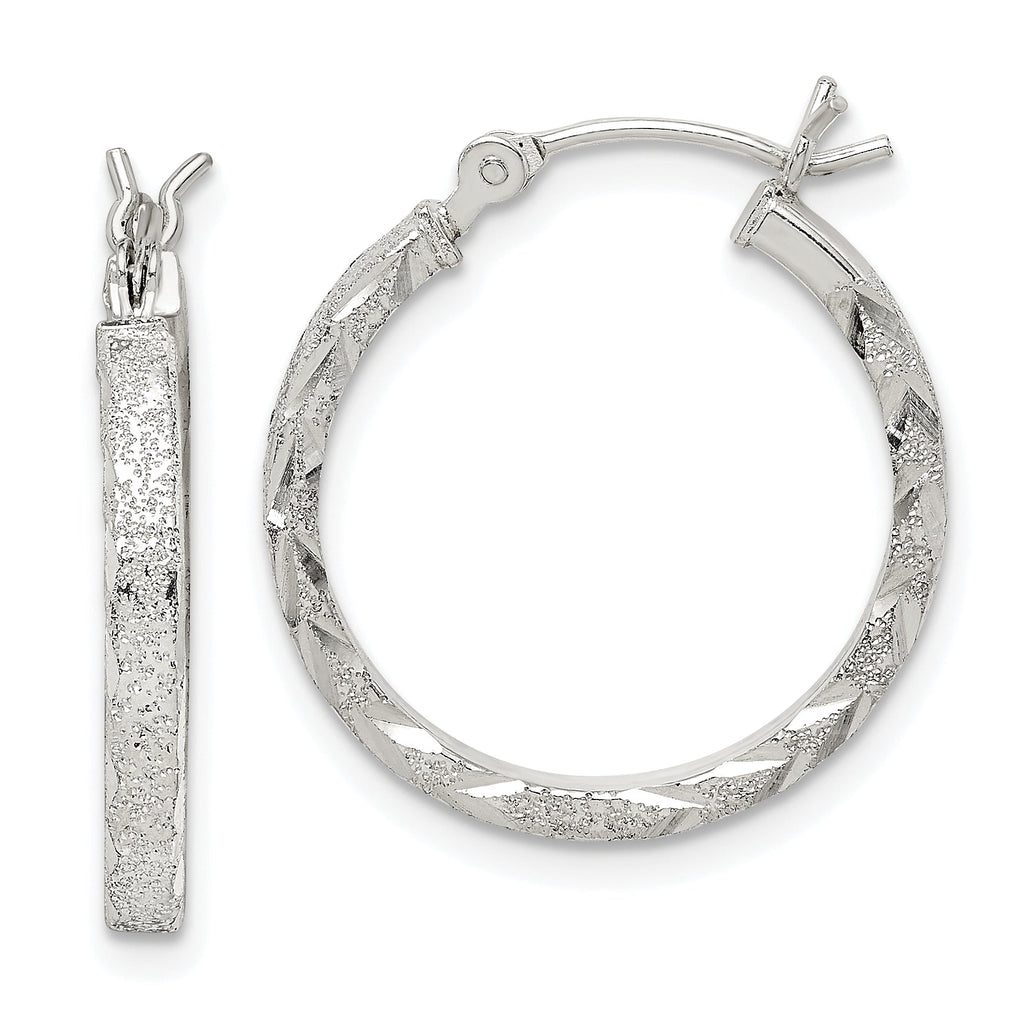 Sterling Silver Textured & Diamond-cut 2.25mm Round Hoop Earrings
