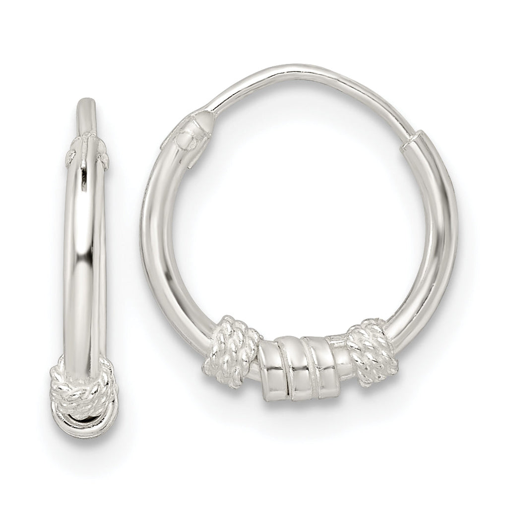 Sterling Silver Polished Beaded Circle Endless Hoop Earrings