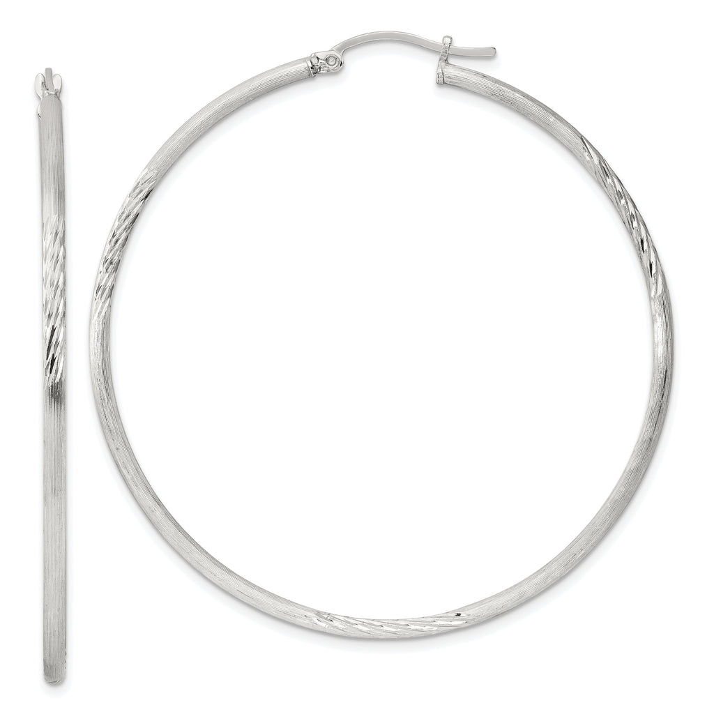 Sterling Silver 2mm Polished/Satin D/C Hoop Earrings