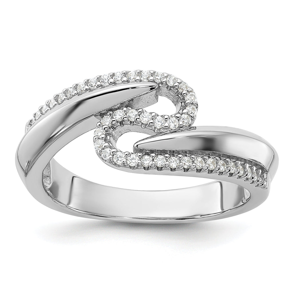 Sterling Silver Rhodium-plated Fancy CZ Ring