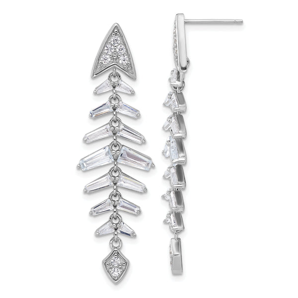 Cheryl M Sterling Silver Rhodium-plated Brilliant-cut and Tapered Baguette-cut CZ Post Dangle Earrings