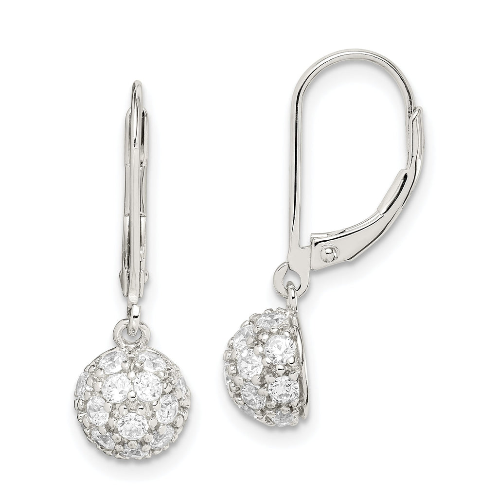 Sterling Silver Rhodium-plated Polished CZ Half Circle Leverback Earrings