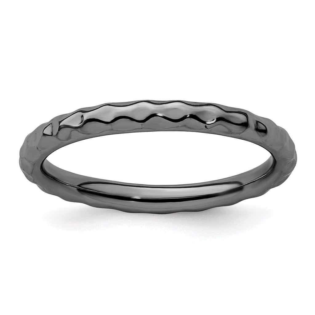 Sterling Silver Stackable Expressions Black-plated Hammered Ring