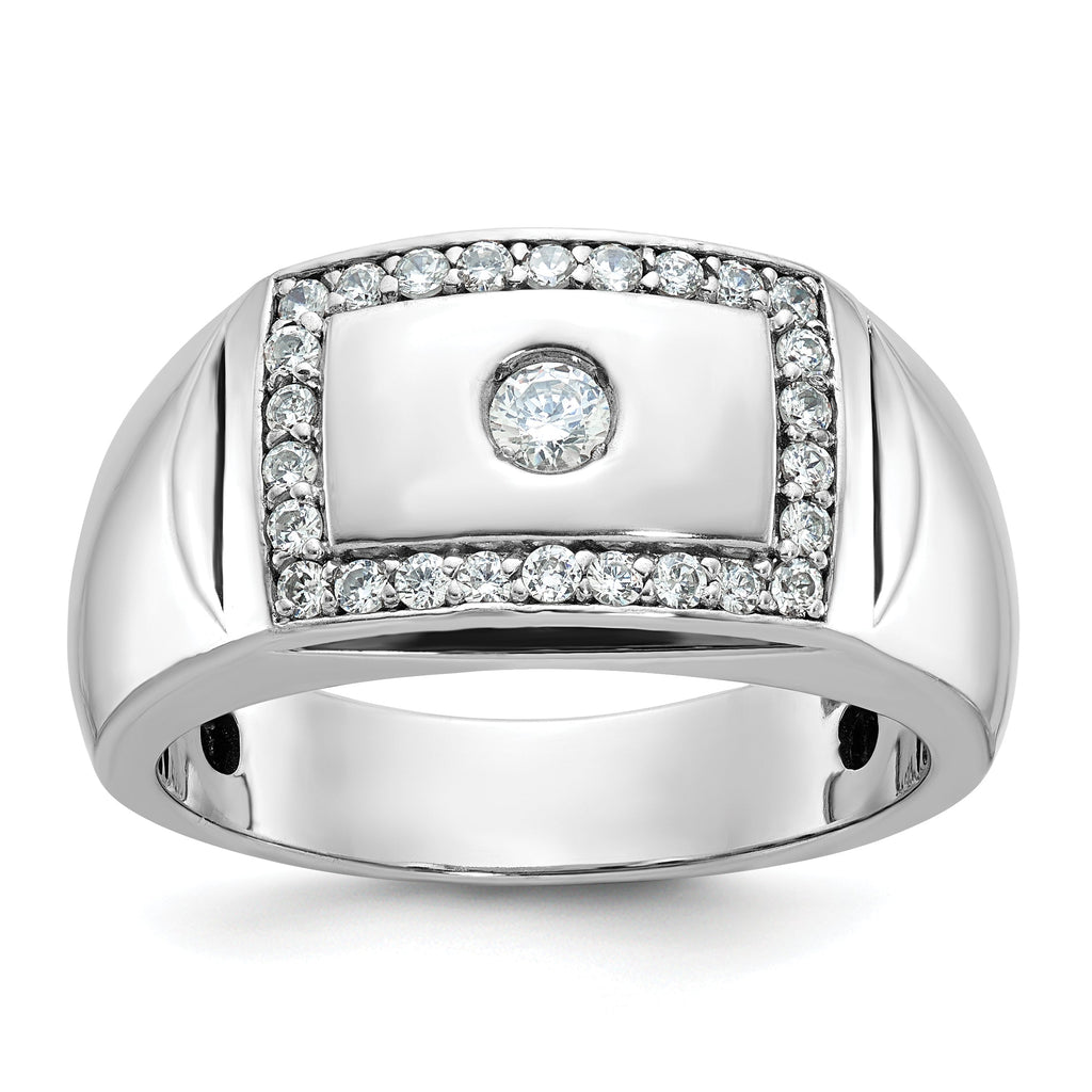 IBGoodman 10k White Gold Men's Polished and Cut-Out 1/2 Carat A Quality Diamond Rectangle Ring