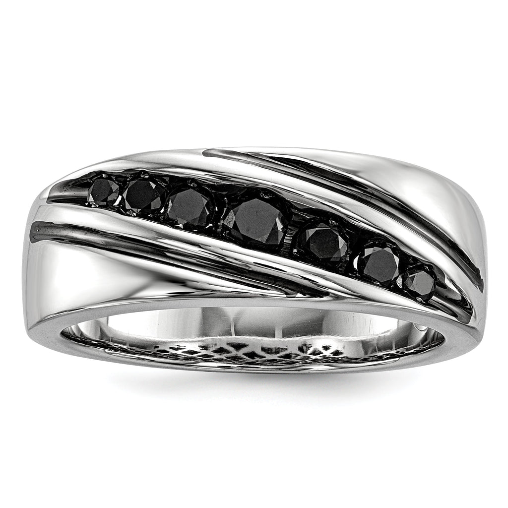 White Night Sterling Silver Rhodium-plated Black Diamond Men's Band Ring