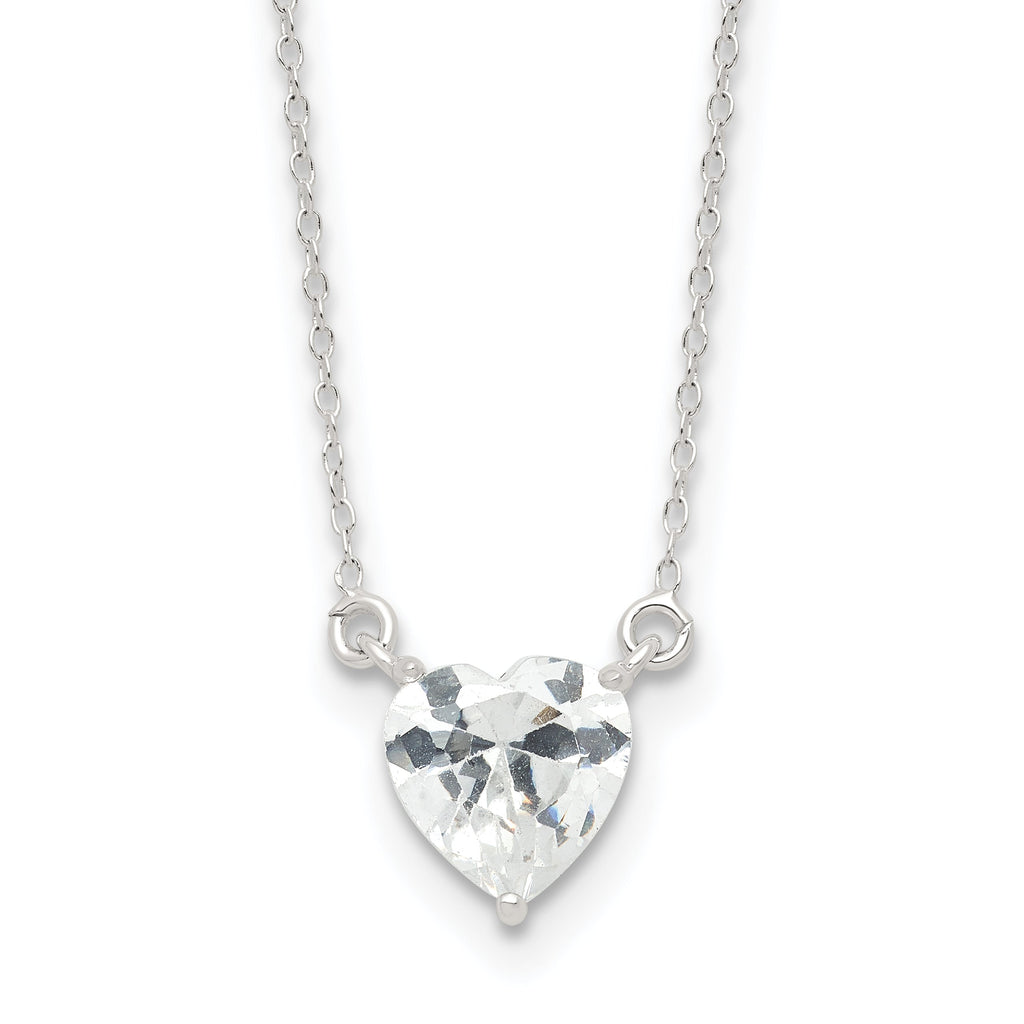 Sterling Silver Polished Heart CZ Necklace