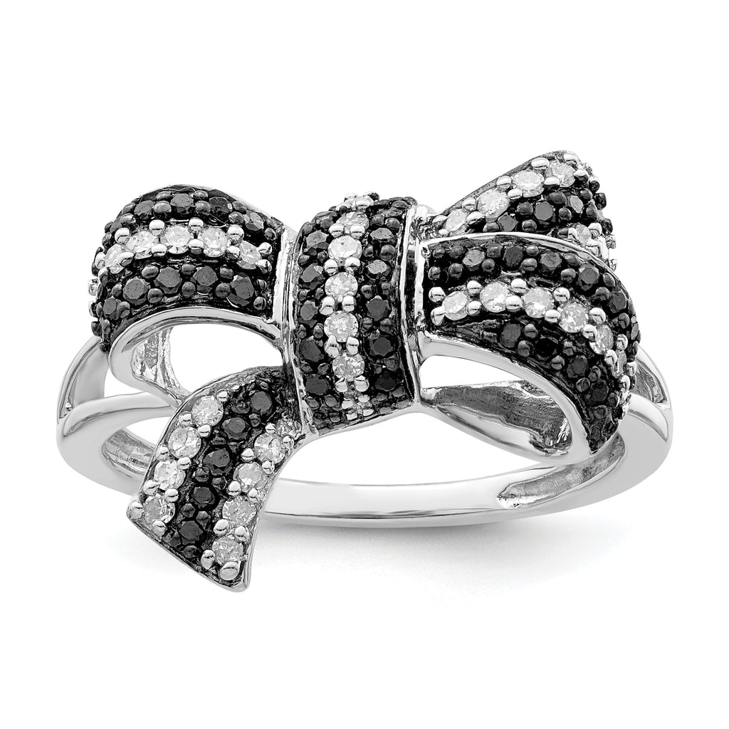 White Night Sterling Silver Rhodium-plated Black and White Diamond Bow Ring