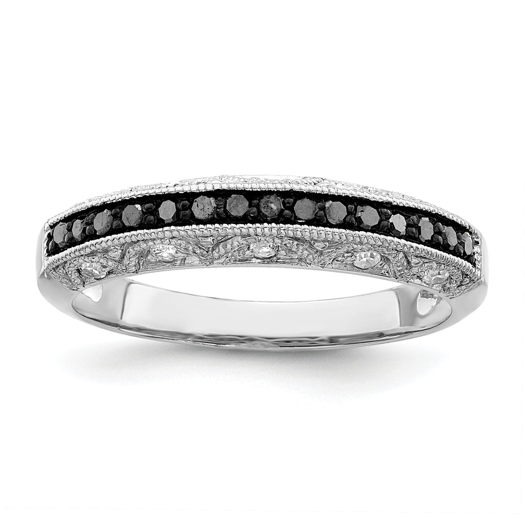 White Night Sterling Silver Rhodium-plated Black and White Diamond Band