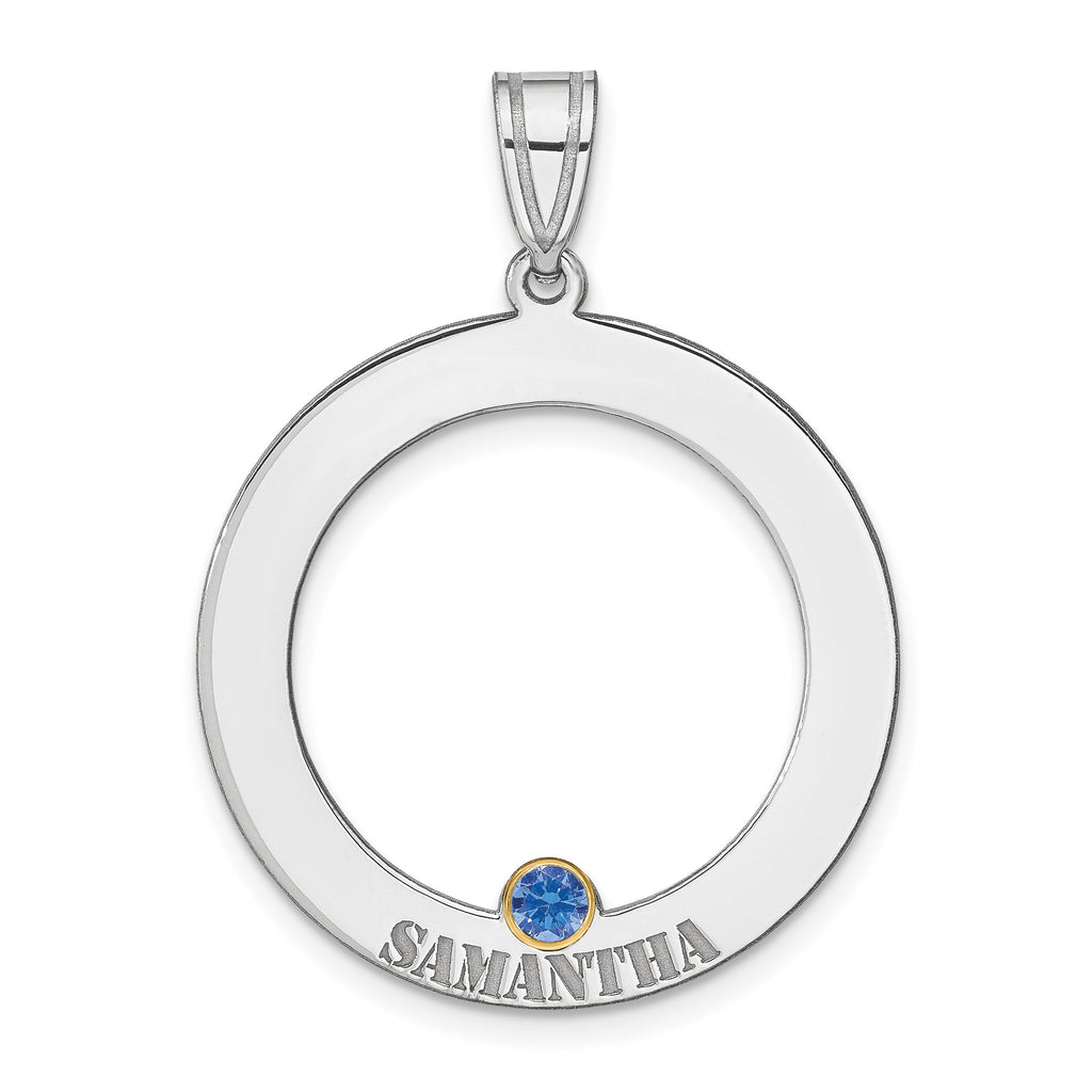 SS/Rhod-plated 1 Birthstone Circle with 14k Bezel Family Pendant