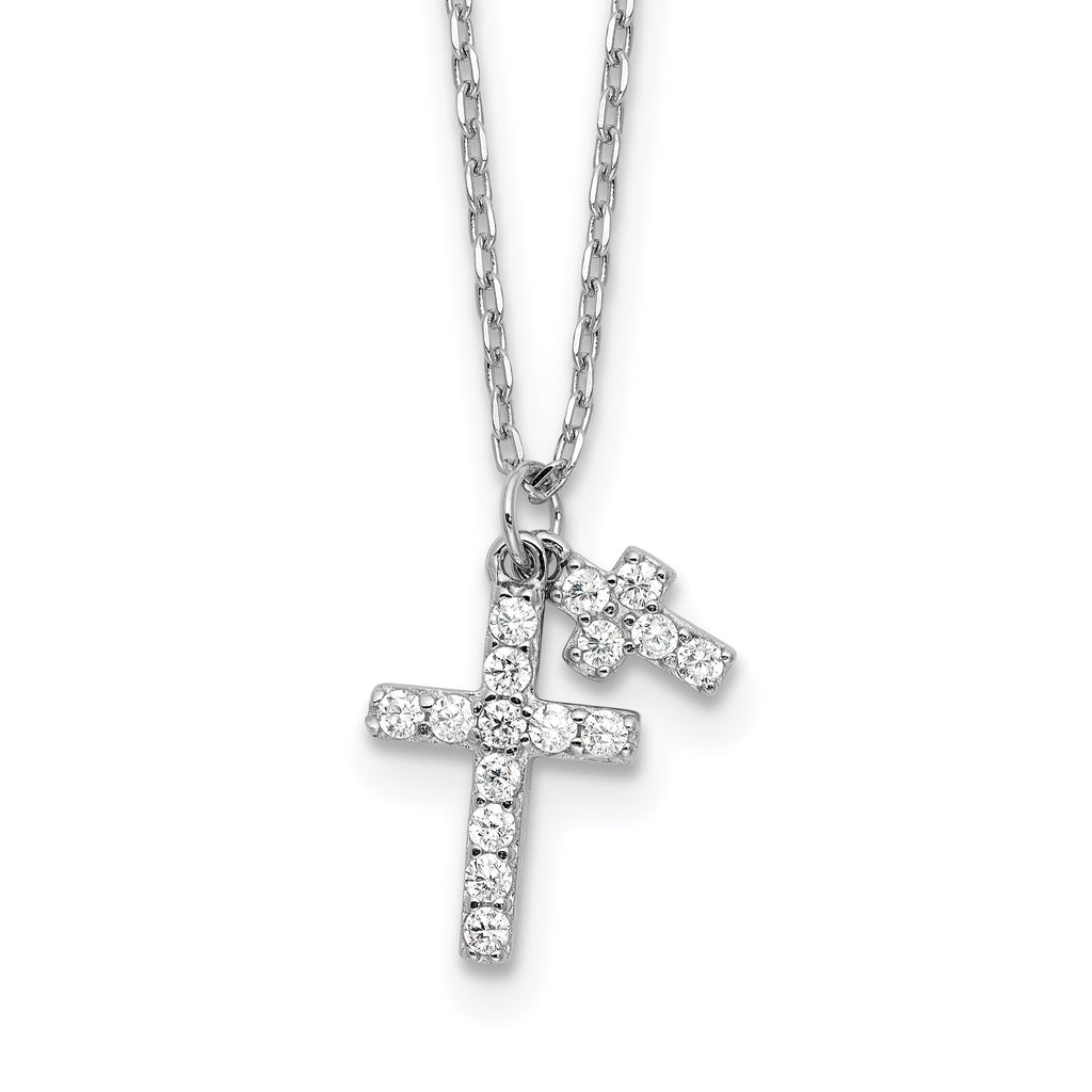 Sterling Silver Rhodium-plated CZ Crosses 16in w/2in ext. Necklace