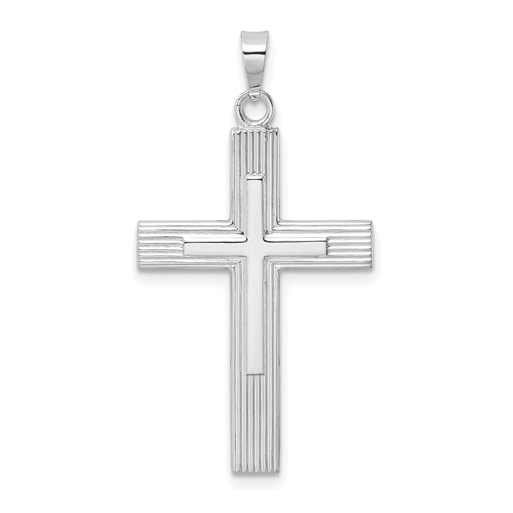 14k White Gold Polished Solid Striped Double Cross Pendant