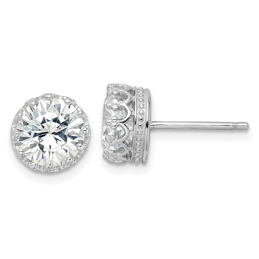Cheryl M Sterling Silver Rhodium-plated Brilliant-cut CZ 8mm Crown Post Stud Earrings
