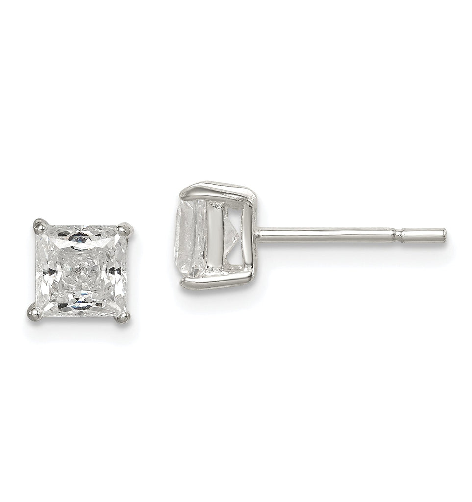 Sterling Silver Polished 5mm Princess CZ Stud Earrings