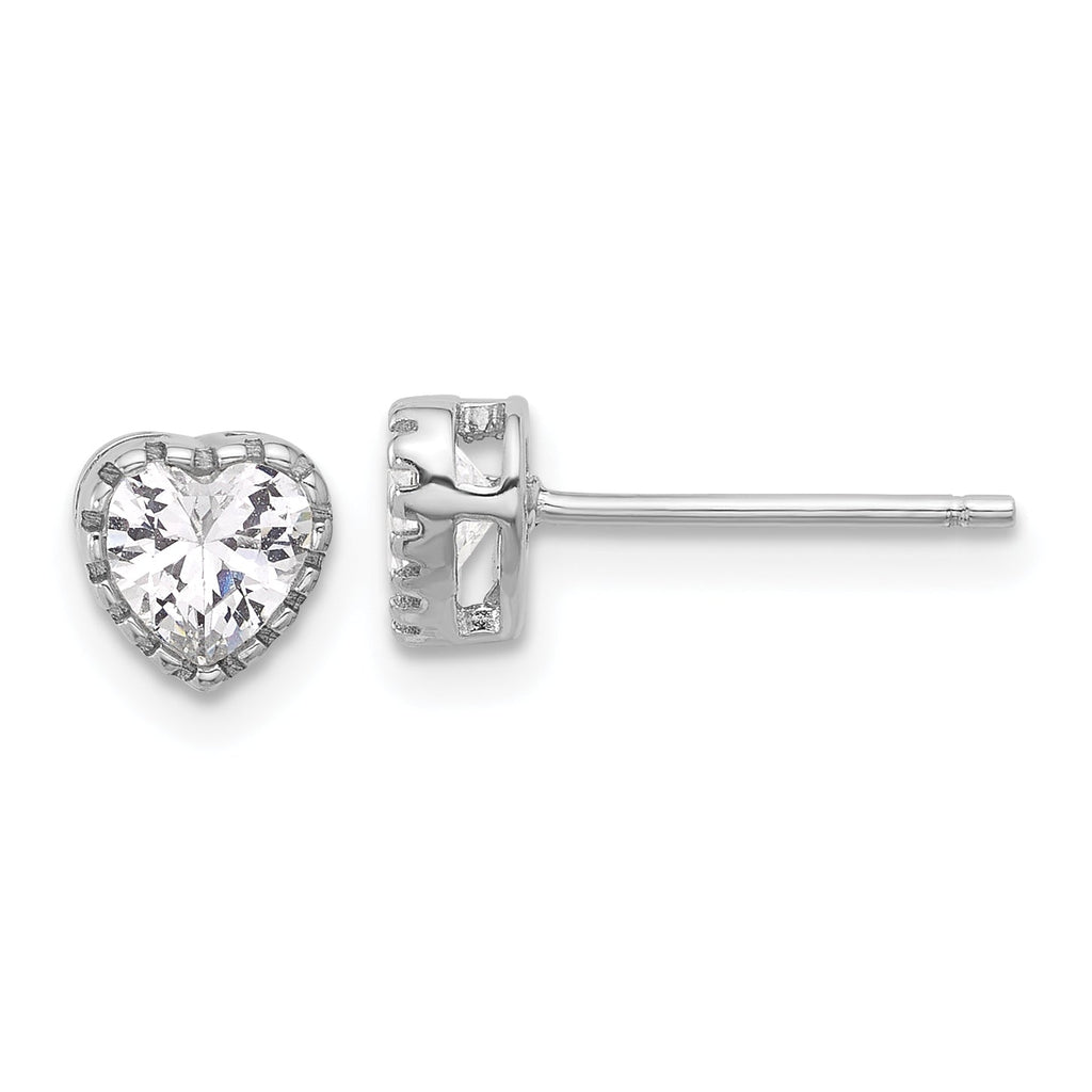 Sterling Silver Rhodium-plated CZ Heart Post Earrings