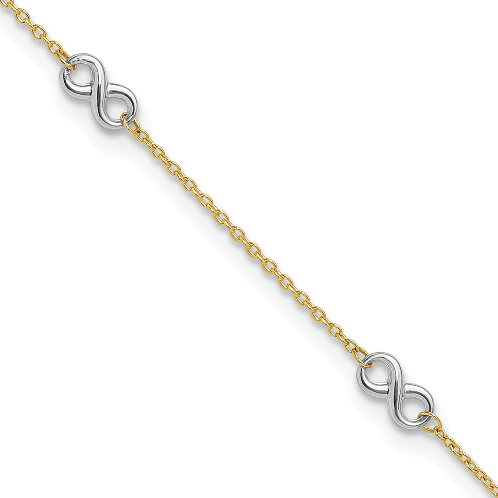 10K Two-tone Polished Infinity 9in Plus 1 in ext. Anklet