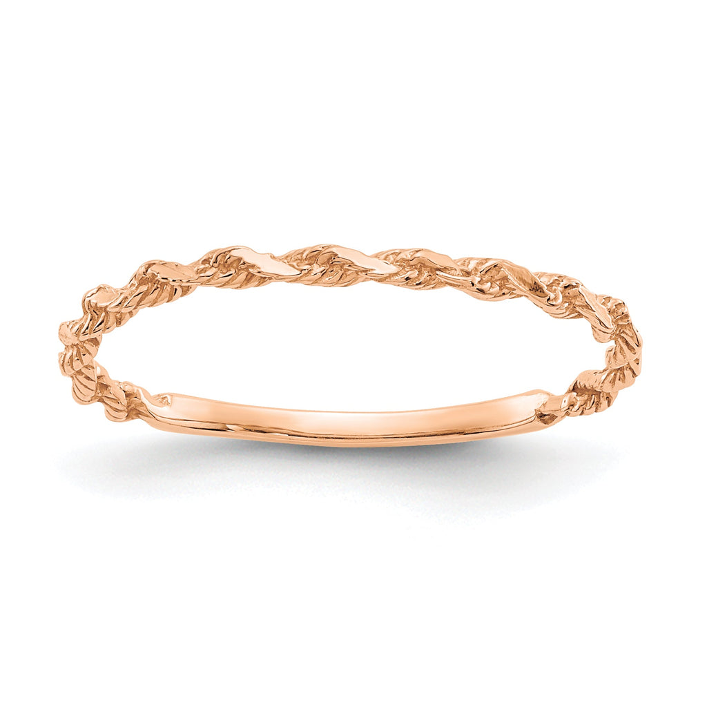 10K Rose Gold Diamond-cut Textured Rope Band Ring