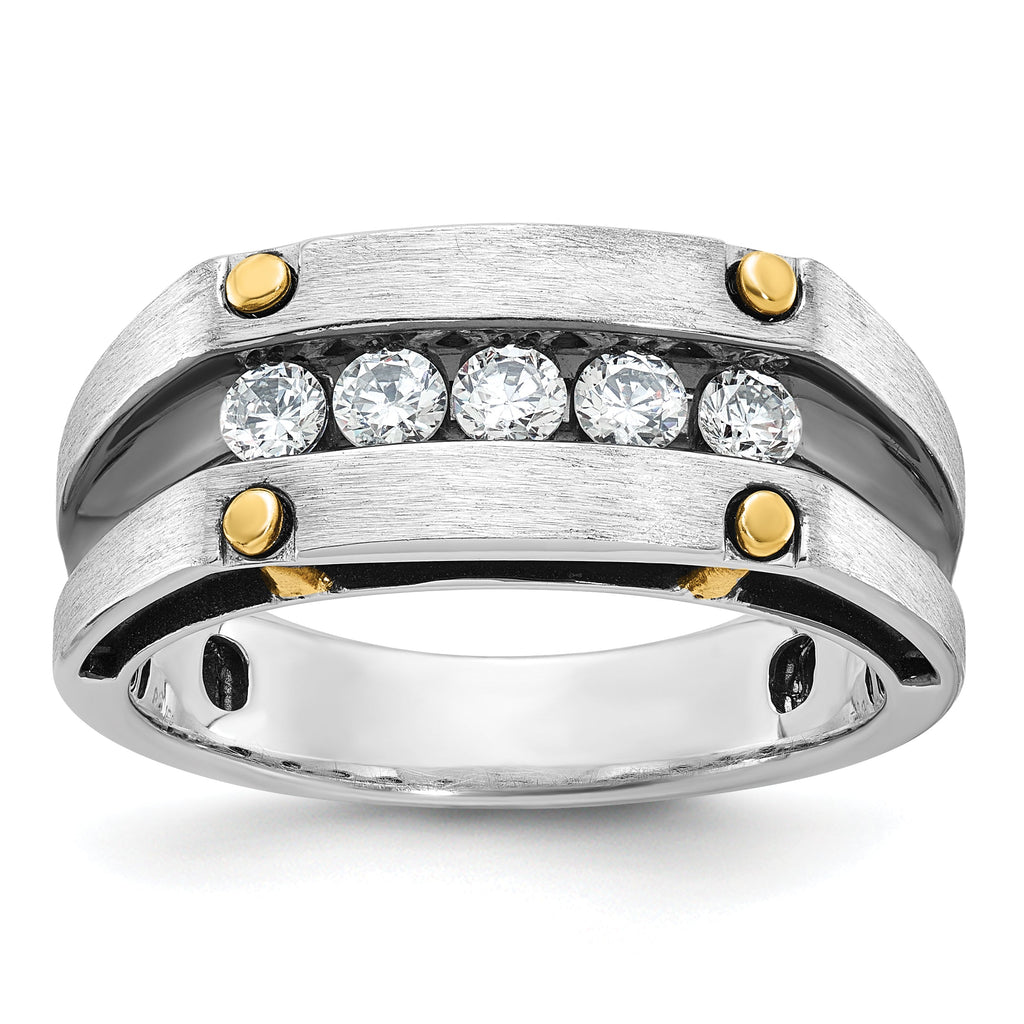 14k Two-tone with Black Rhodium Men's Polished Satin and Grooved 5-Stone 1/2 Carat Lab Grown Diamond Ring
