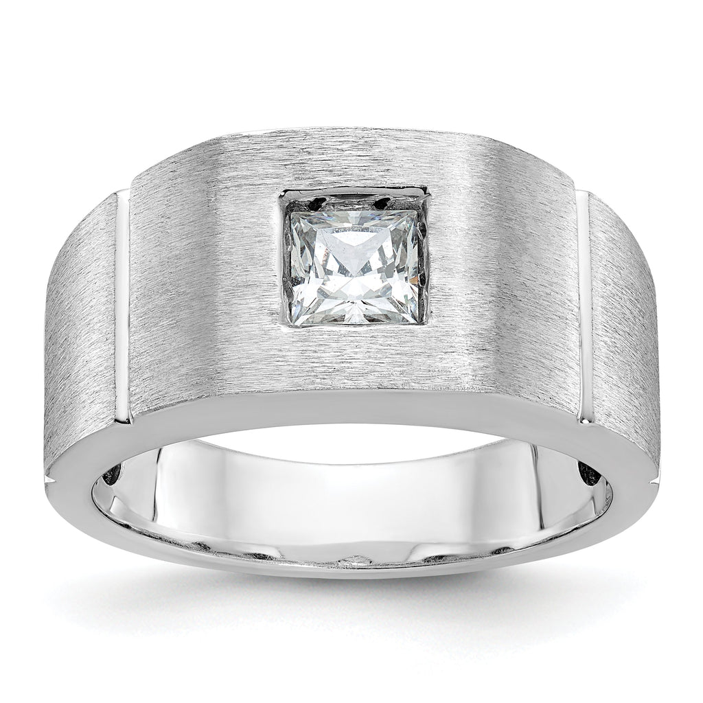 14k White Gold Men's Polished and Satin Square Solitaire 2/3 Carat Lab Grown Diamond Ring