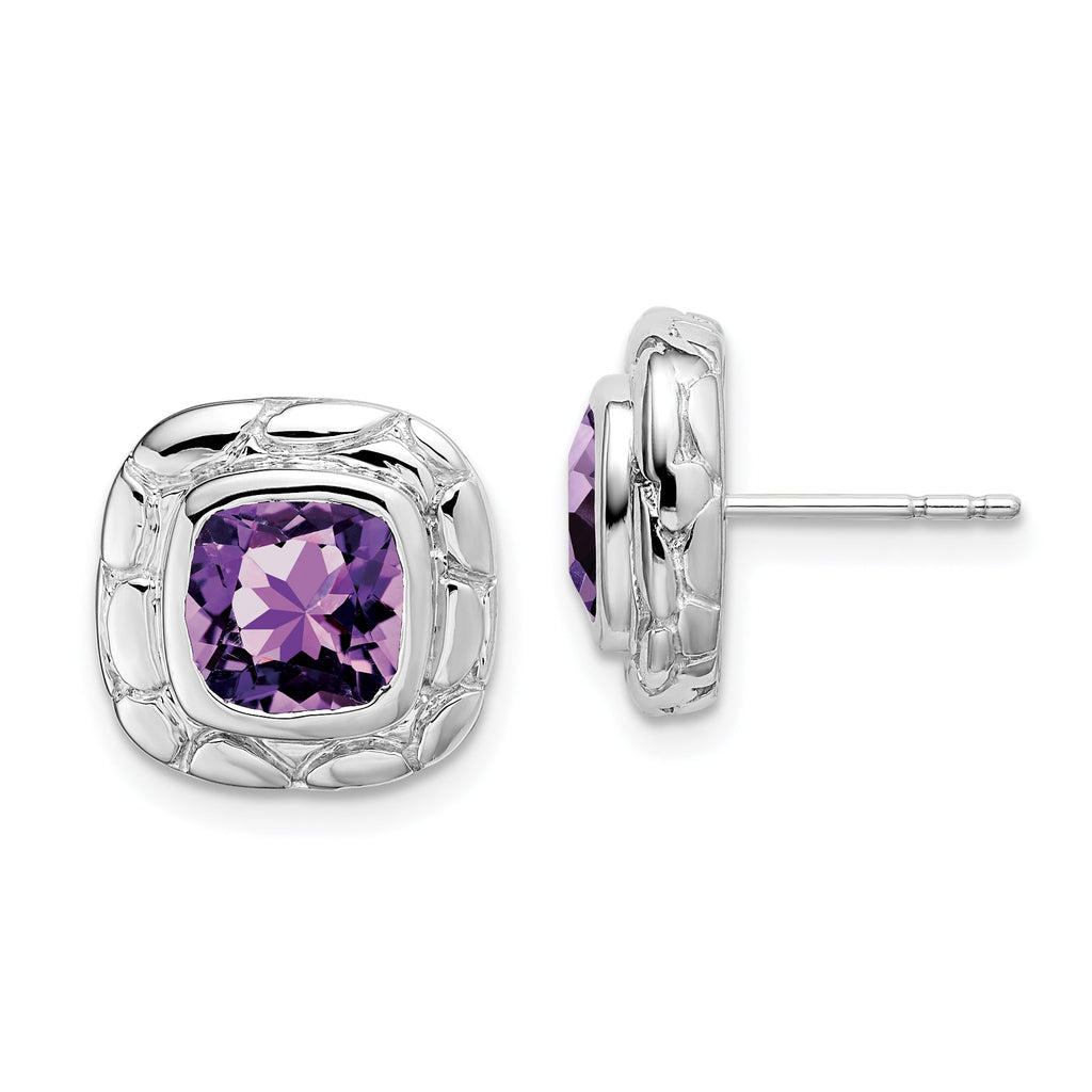 Sterling Silver Rhodium-plated Amethyst Earrings