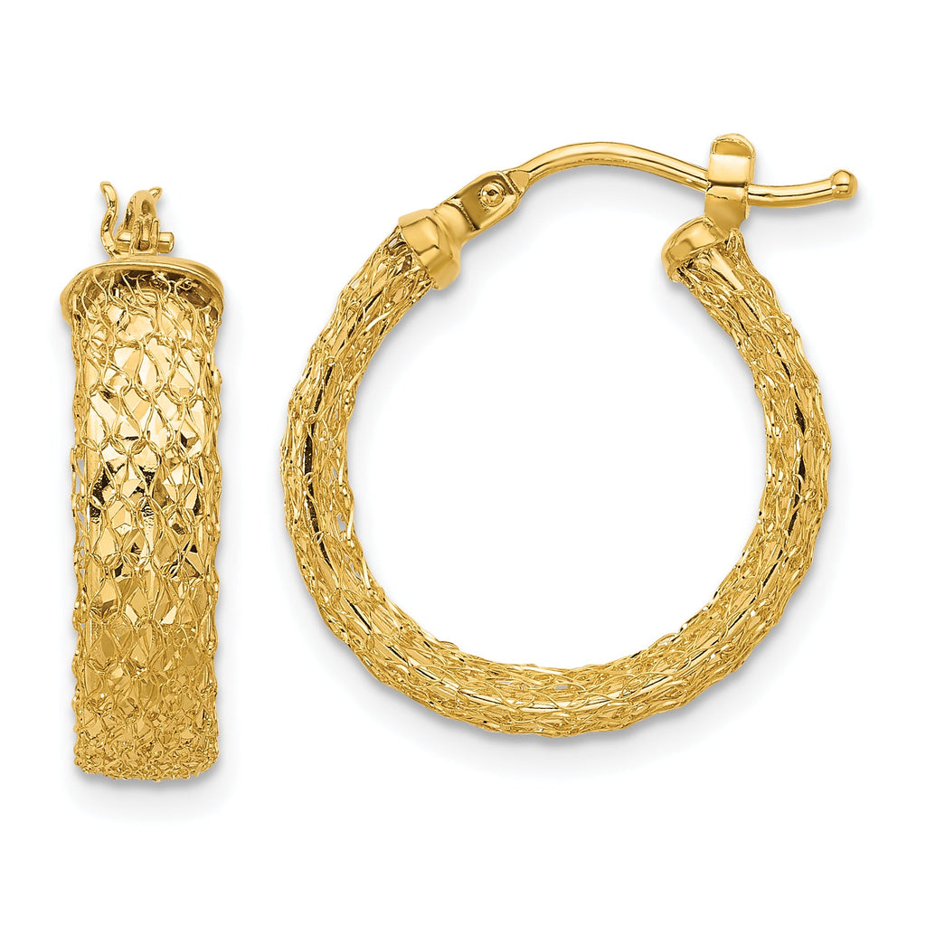 14K Polished/Textured/Diamond-cut Hoop Earrings