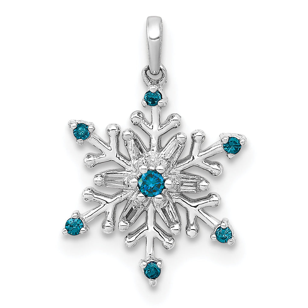14k White Gold 1/10ct. Blue and White Diamond Snowflake Pendant