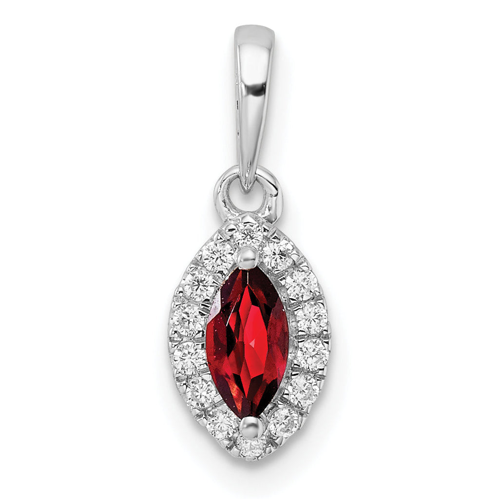 14K White Gold Lab Grown Diamond and Garnet Pendant