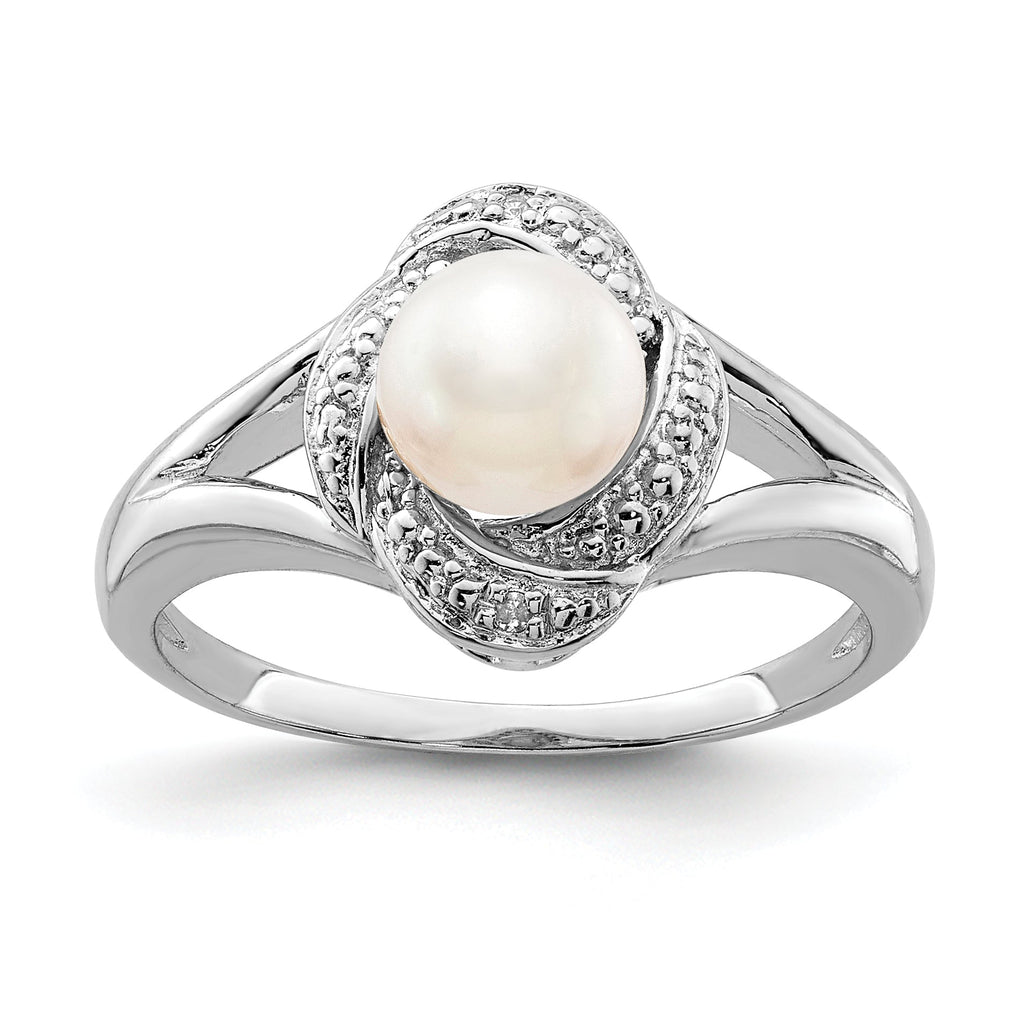 Sterling Silver Rhodium-plated Diamond & Fresh Water Cultured Pearl Ring