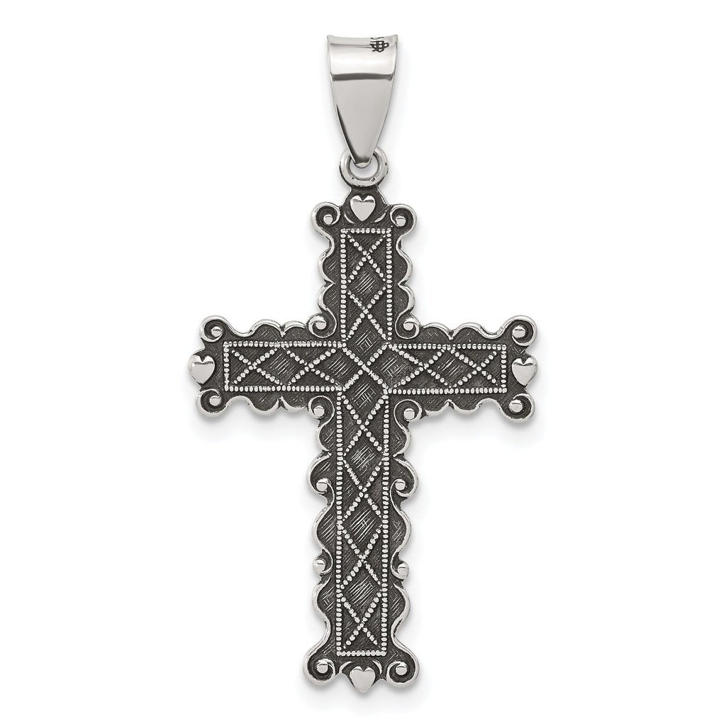 Sterling Silver Antiqued Solid Textured Cross Pendant