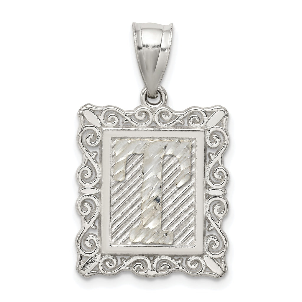 Sterling Silver Square Diamond-cut Letter T Initial Pendant