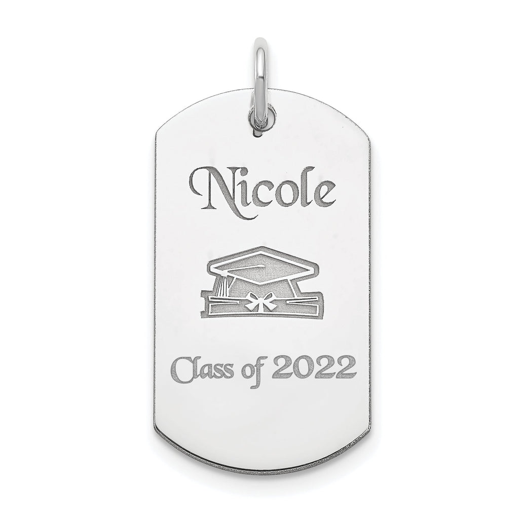 Sterling Silver Rhodium-plated Personalizable Graduation Dog Tag Charm