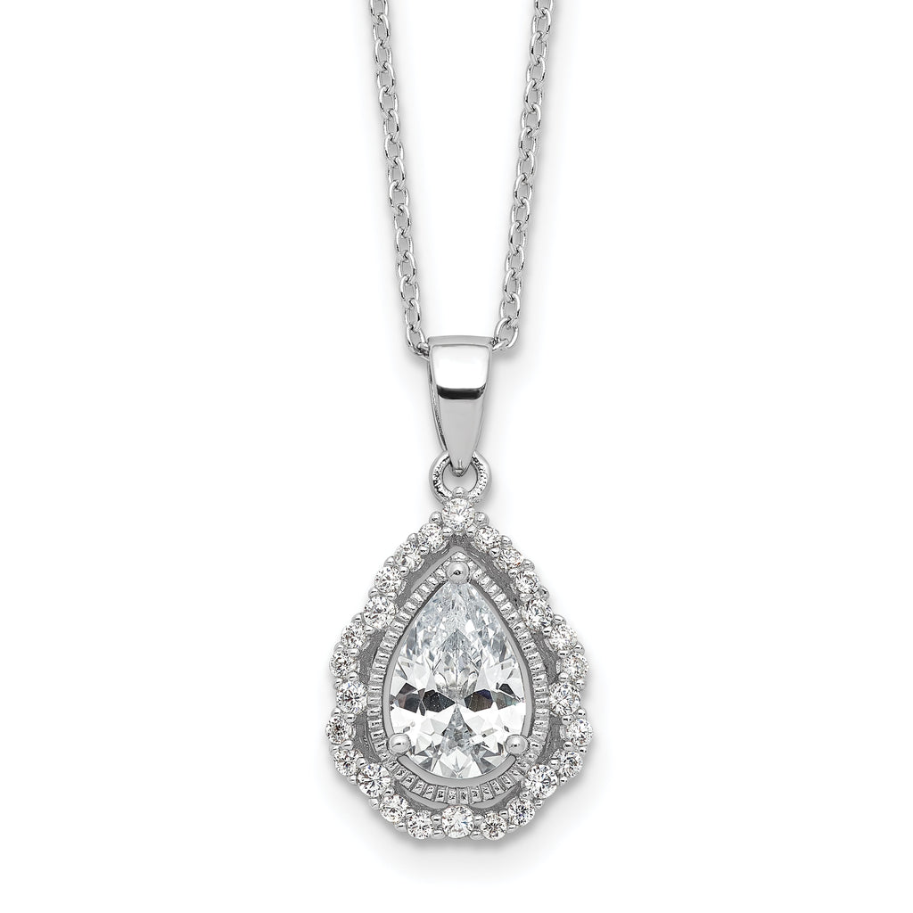 Cheryl M Sterling Silver Rhodium-plated Brilliant-cut CZ Teardrop 18 Inch Necklace with 2 Inch Extender