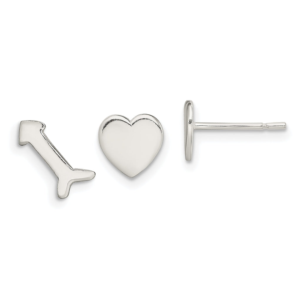 Sterling Silver Polished Left and Right Heart/Arrow Post Earrings
