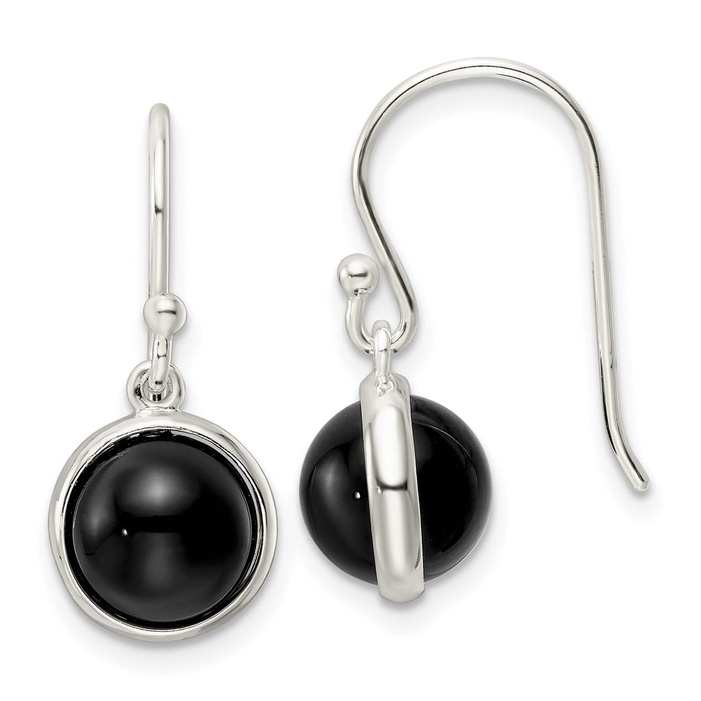 Sterling Silver Polished Onyx Bead Dangle Earrings