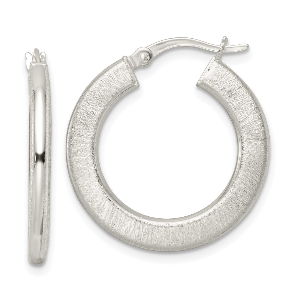 Sterling Silver Flat Brushed 2.5mm Round Hoop Earrings