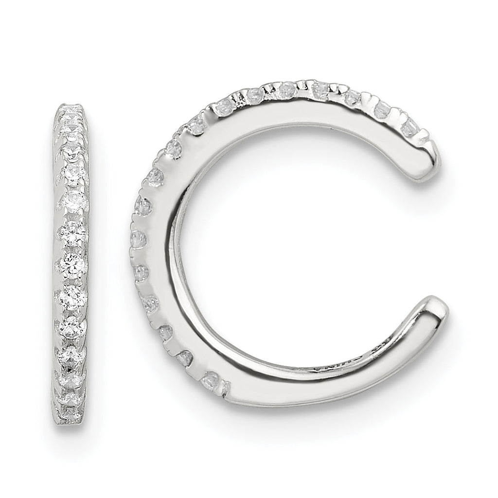 Sterling Silver E-Coating Polished CZ Pair of 2 Cuff Earrings