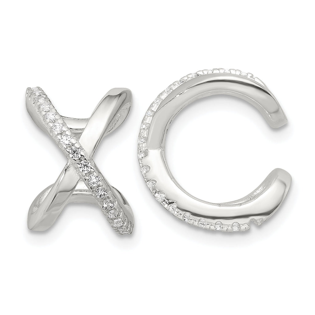 Sterling Silver E-Coating Polished CZ 'X' Pair of 2 Cuff Earrings
