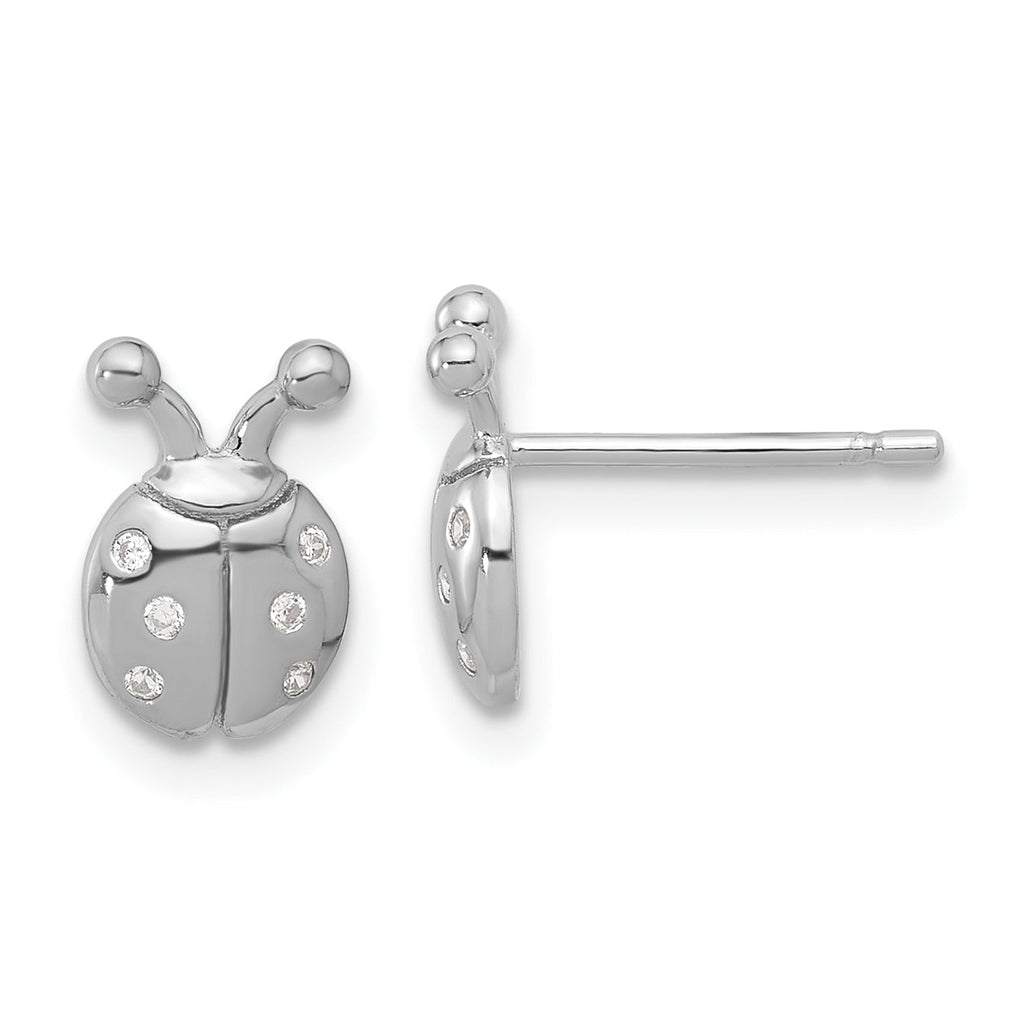 Sterling Silver Flash Platinum-plated CZ Ladybug Post Earrings