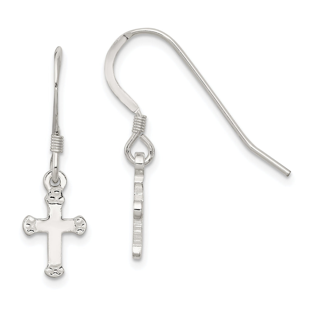 Sterling Silver Polished & Textured Cross Dangle Earrings