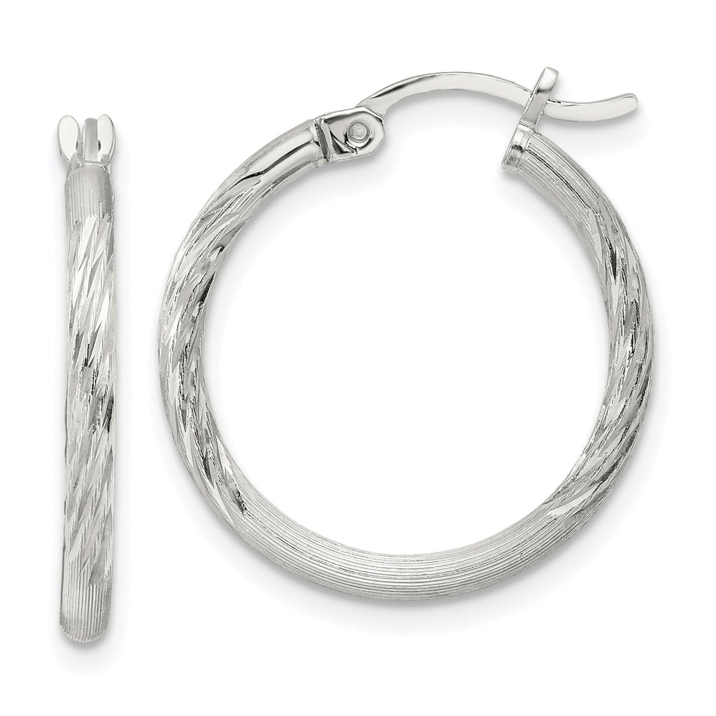 Sterling Silver 2mm Polished/Satin D/C Hoop Earrings