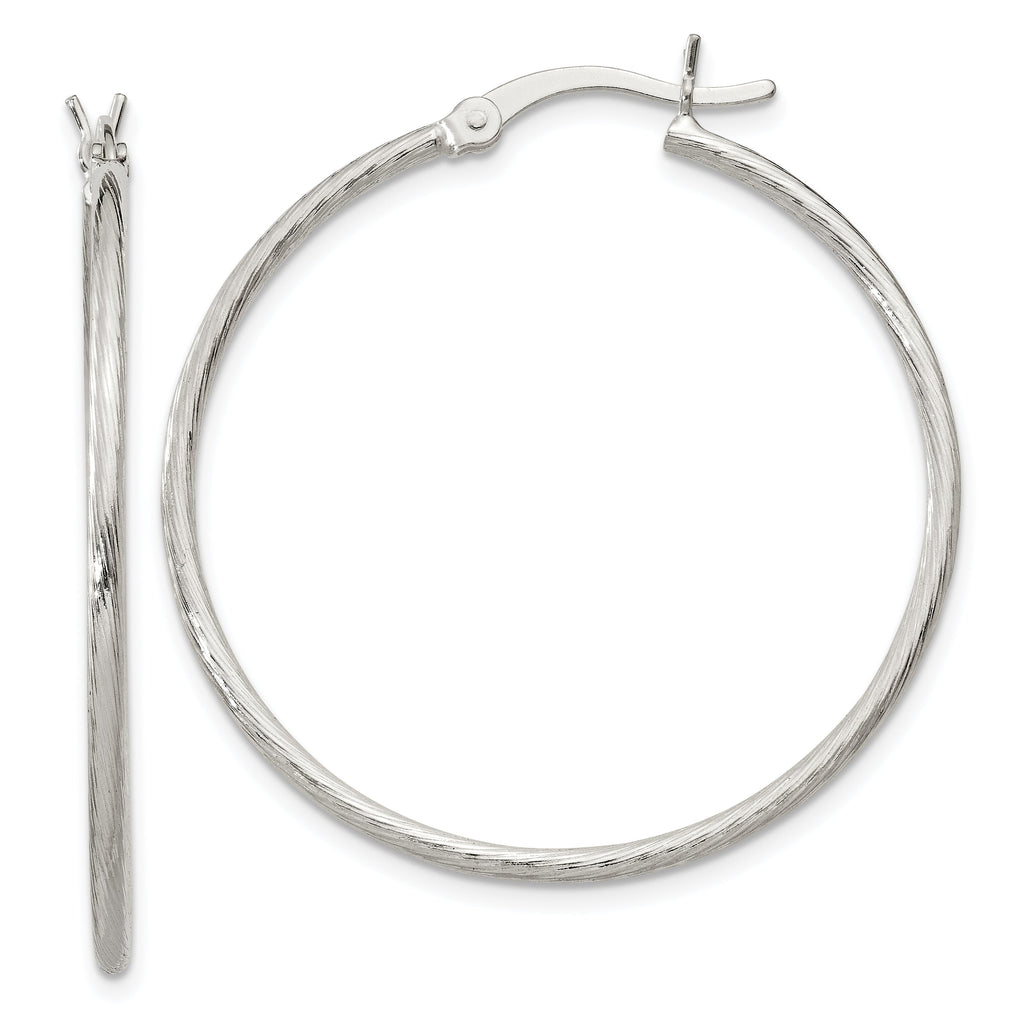 Sterling Silver Fine Twist 1.5x35mm Hoop Earrings