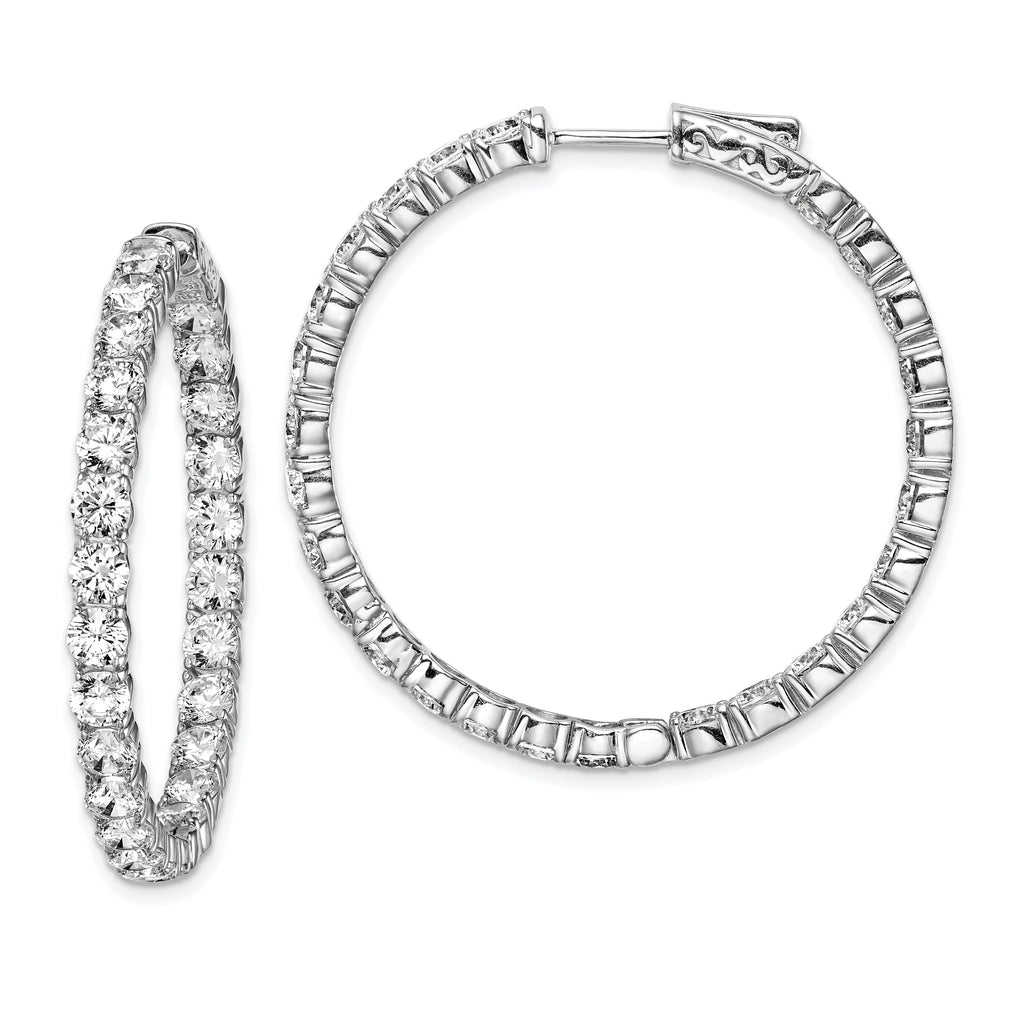 Sterling Shimmer Sterling Silver Rhodium-plated 52 Stone 3.5mm CZ In and Out Round Hinged Hoop Earrings