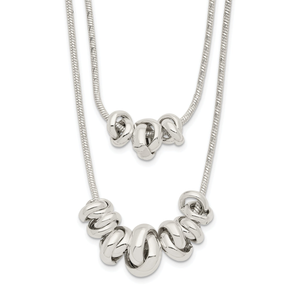 Sterling Silver Double Rings 2-Strand w/2 in ext Necklace