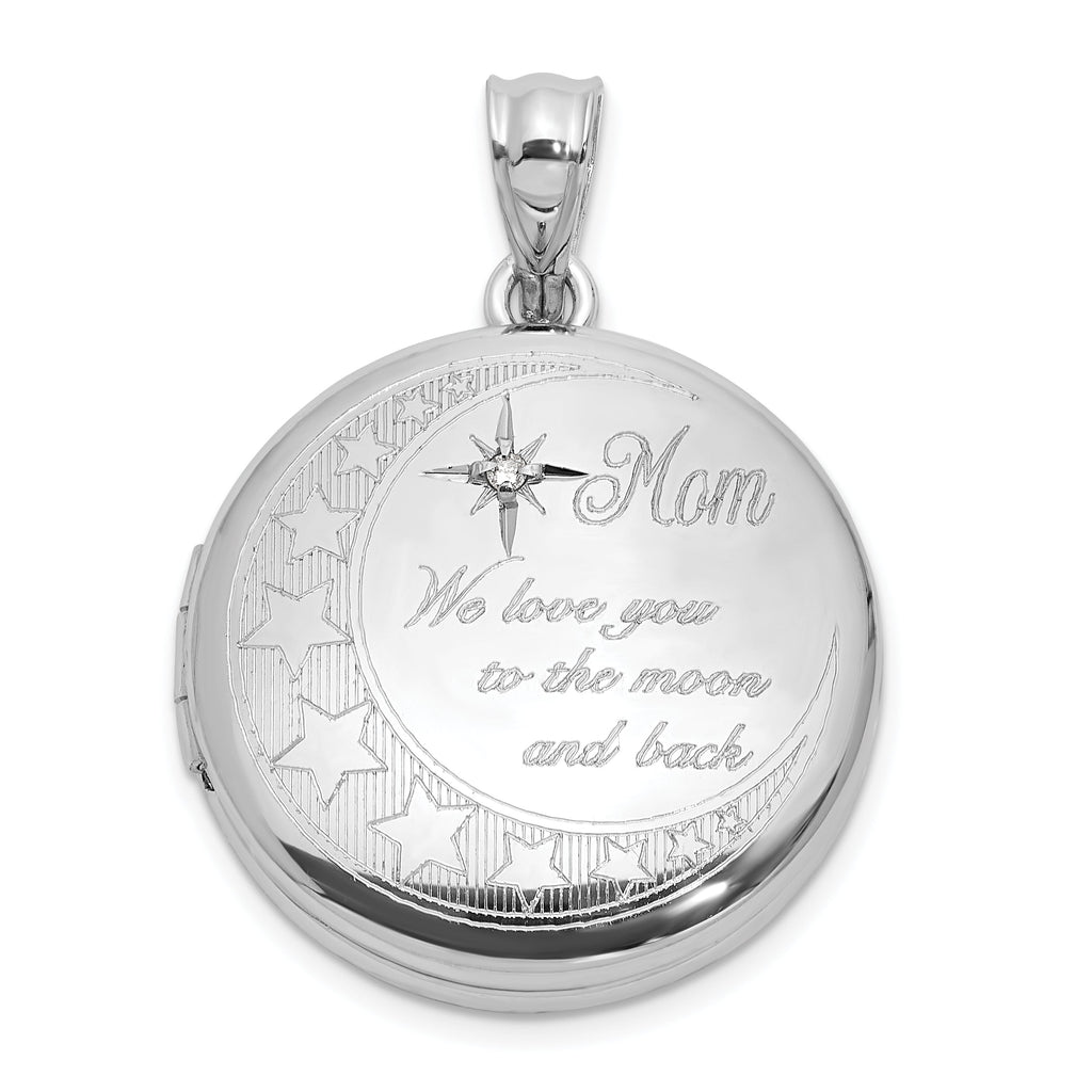Sterling Silver Rh-plated Diamond 20mm Mom Moon/Stars Round Locket